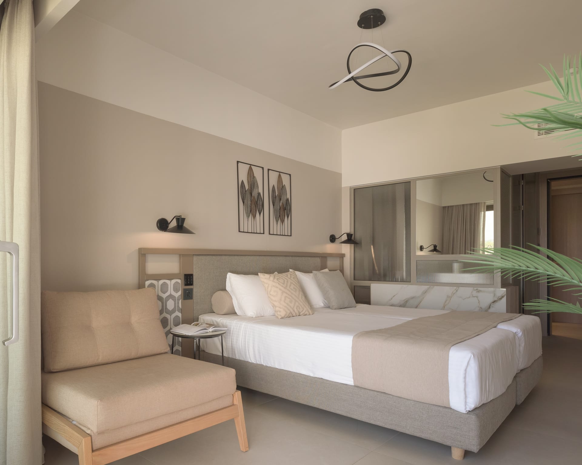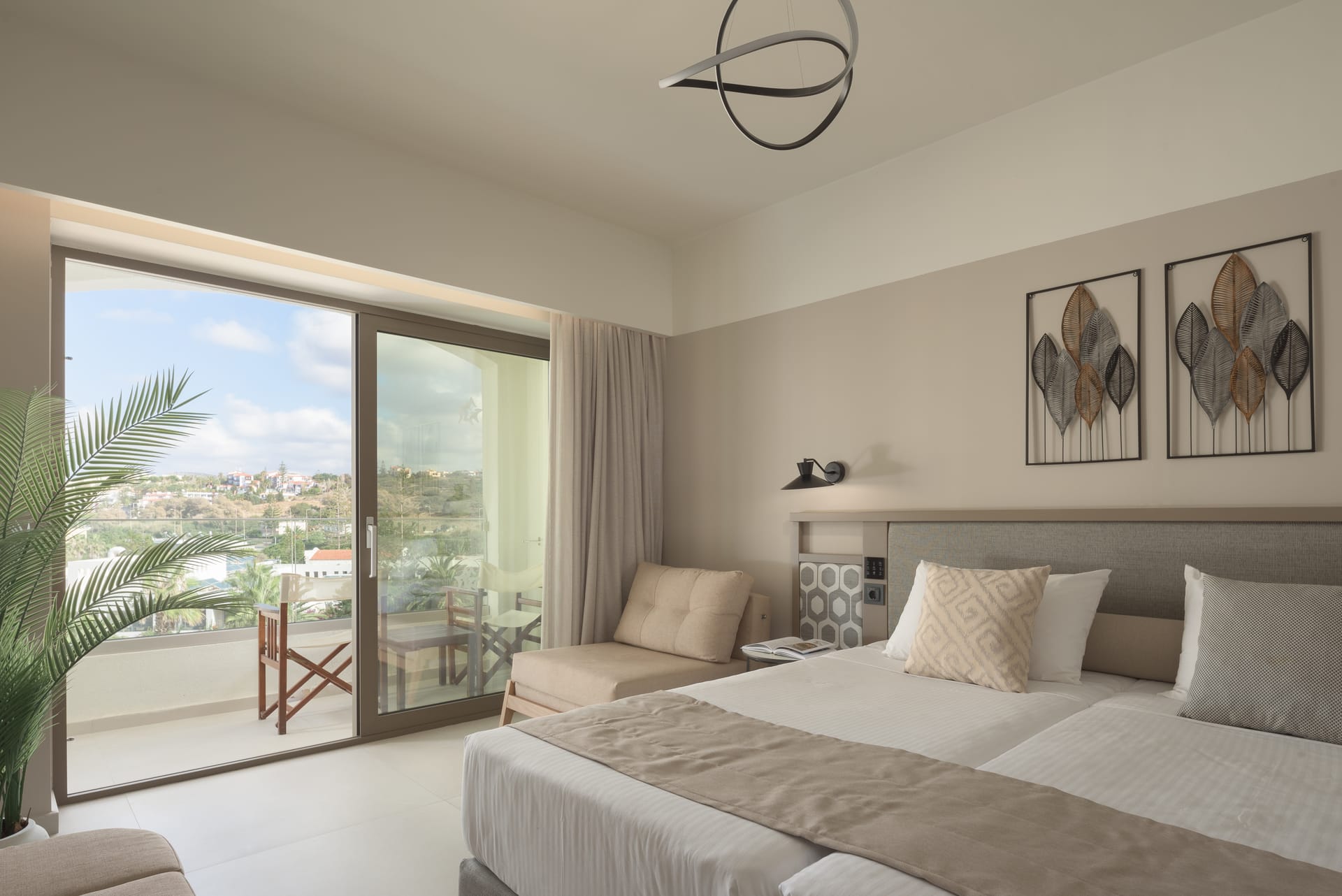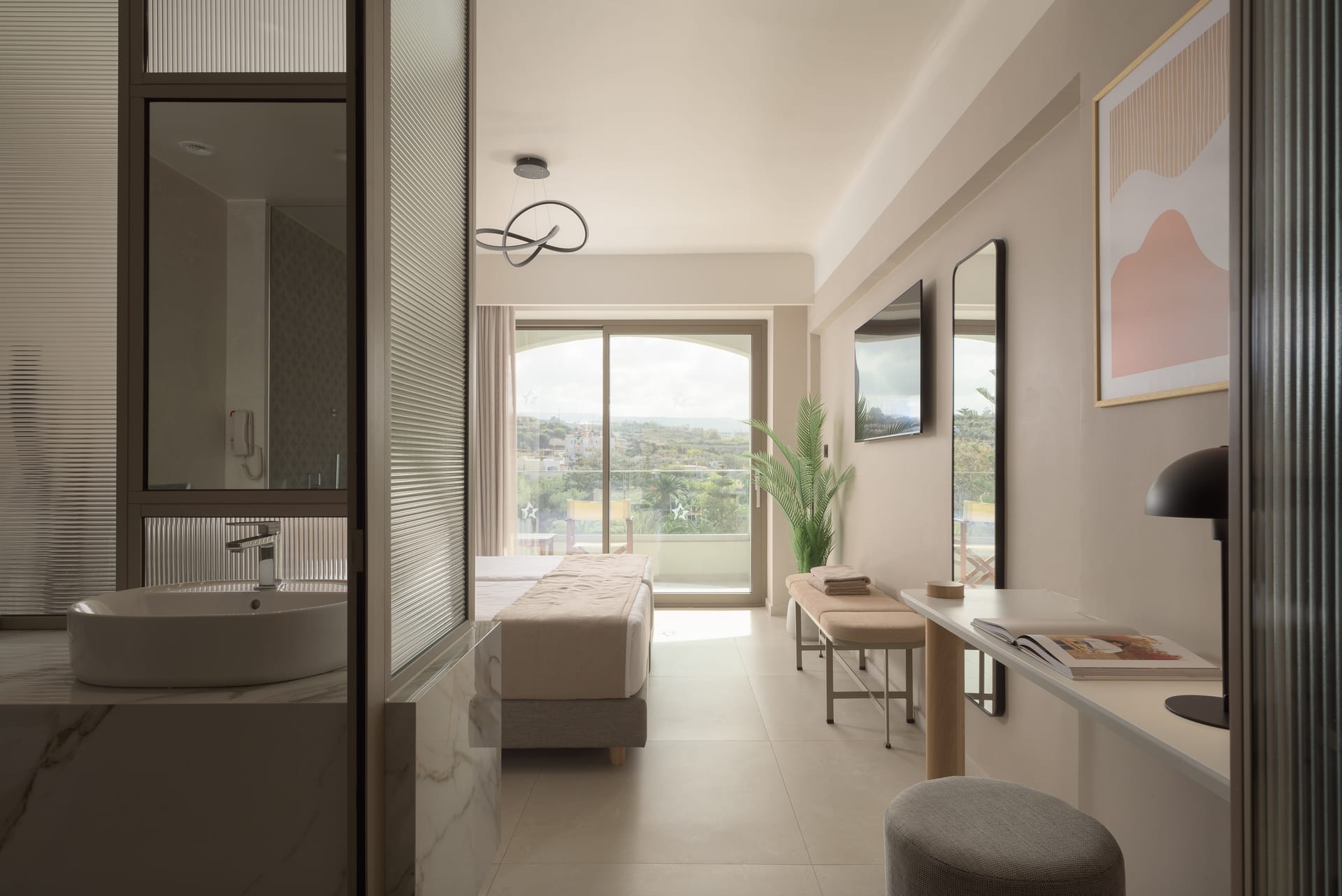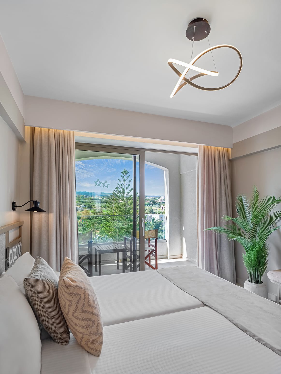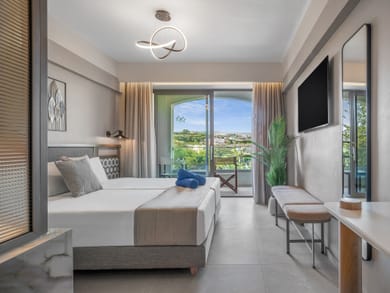 Located in the main building, with mountain views, these rooms are equipped with air-condition operating 15/06-15/09, satellite TV, Free WiFi, direct dial phone, Voltage 220V, mini-refrigerator, bathroom with shower, hairdryer & bathroom amenities. The room features a furnished balcony with mountain views. The beach or pool towels are provided from the reception free of charge. Also, a safe deposit box is available at the reception area with extra charge.